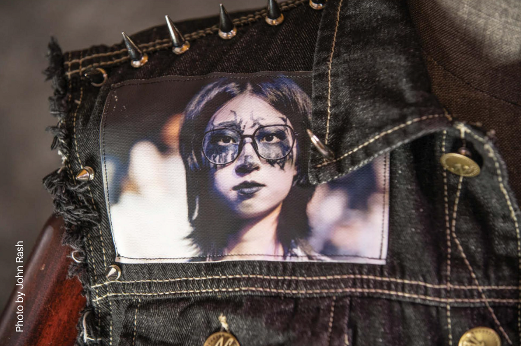 I decided this project should highlight the community aspect of this culture, and I would focus primarily on audience members rather than performers. Initial engagements began with portraits taken during breaks between bands and as people were spilling out onto the sidewalk at the end of the night. I would ask people if I could photograph them and later share the images digitally. This opened a line of communication that I used to extend invitations for formal portraits at my studio. This method quickly inspired word-of-mouth recommendations, and within a few weeks I had people approaching me, recognizing me from previous concerts, and asking if I would photograph them. The initial field photos became a great collection of faces and styles of people attending underground music events in Shanghai. The final work is a combination of photography and culturally relevant clothing constructed by printing the photos on small pieces of canvas and then sewing them onto a denim “battle vest” in the same style that many punk and metal fans sew patches representing their favorite musicians onto their own vests or jackets. The vest both documents the fans who comprise this community and reflects the culture it represents. As the audience, this community is an active participant in the music events, so my battle vest turns the camera away from the stage and onto the audience to acknowledge this reciprocal relationship.